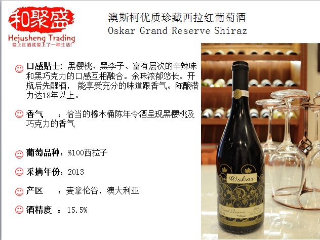澳斯柯优质珍藏西拉红葡萄酒
