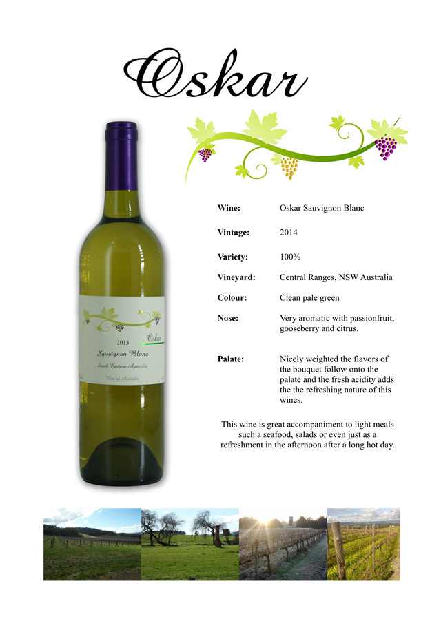 Oskar 系列是由澳大利亚中央区域的新南威尔斯洲那里的葡萄园酿制出来。中央区域拥有浓郁的土壤,是众所周知盛产优良品质葡萄的产区。加上庄园种植的葡萄树平均年纪有十到十五年,葡萄酒的产量跟质量有一定的保证。Oskar 系列组合了中央区域两至三个葡萄园的葡萄,有一些更是有机种植的葡萄园。 这个系列有西拉丶赤霞珠及长相思。